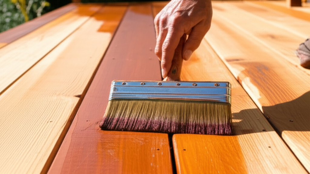 If you chose a post-install stain, we apply it after construction using professional equipment. Pre-stained boards arrive ready to install — your choice.